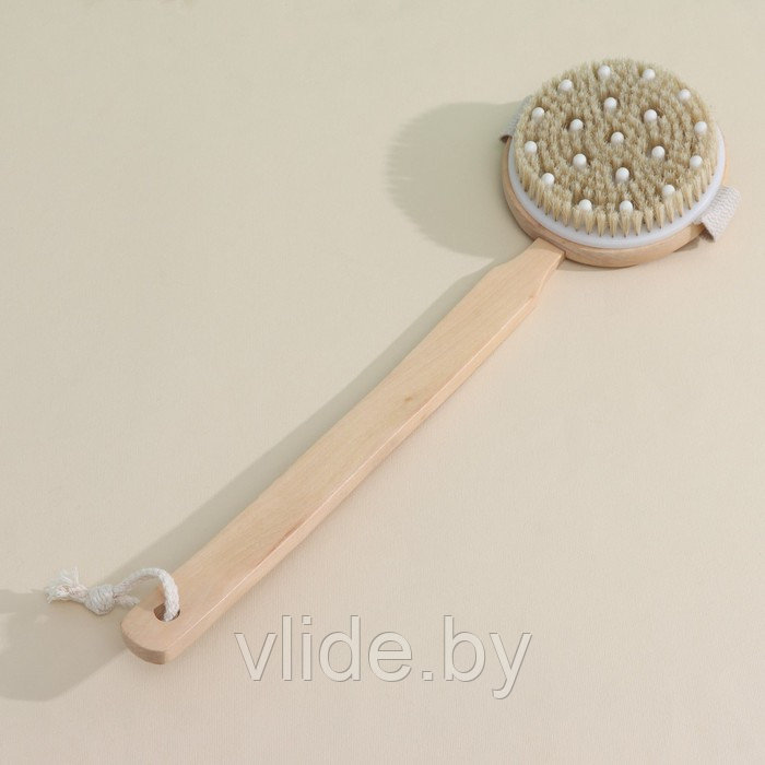 Щётка массажная для тела Доляна, с ремешком, натуральная щетина